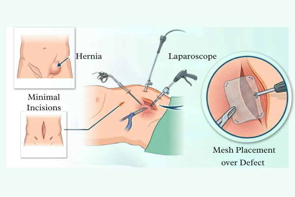 Laparoscopic hernia surgery is a minimally invasive procedure used to repair hernias. A hernia occurs when part of an organ pushes through a weak spot in the abdominal wall or muscles. Laparoscopic surgery is the modern approach that uses small incisions and a camera to guide the surgeon during the procedure. It leads to faster recovery, reduced pain, and less scarring compared to traditional open surgery.
